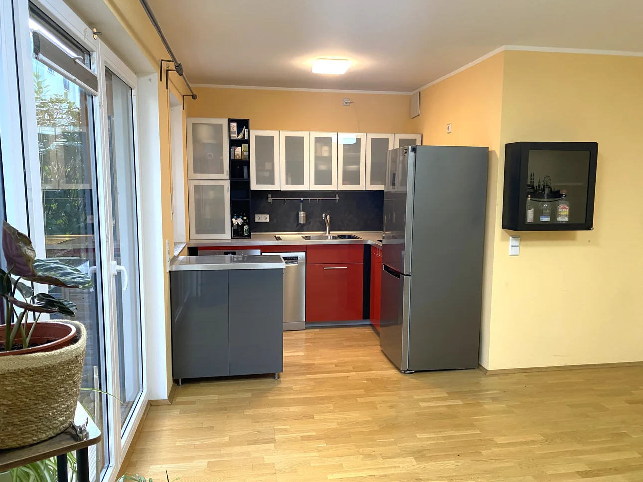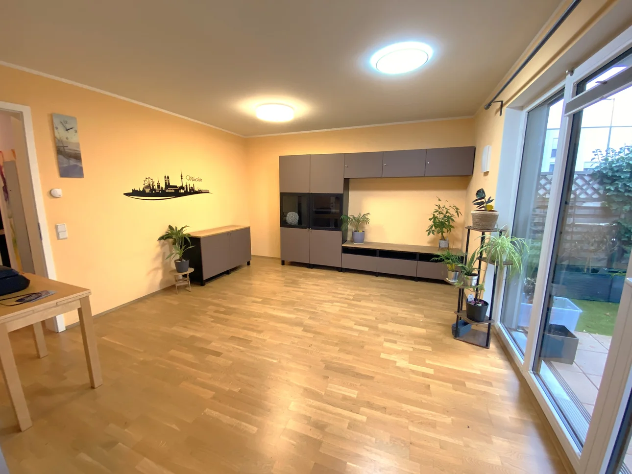 Fenstern zur Terrasse schafft eine helle und freundliche Atmosphäre. Von hier aus gelangen Sie direkt auf die sonnige Terrasse, die in den warmen Monaten zusätzlichen Wohnkomfort bietet. Die vorhandene offene Ikea Küche bietet Möglichkeit zum Kochen und verbindet den Wohnbereich.